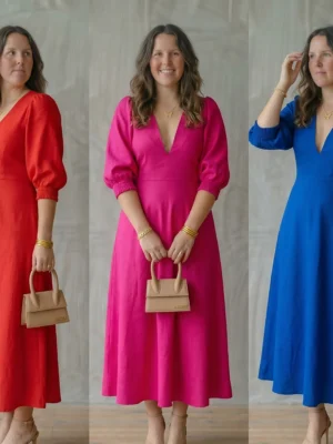La tela es SEDA MATE (ligeramente delgada, fresca e informal, elasticidad del 20%, con una superficie lisa. No es brillante, lo que le da un aspecto más sofisticado y mate). Este espectacular maxi vestido con escote en V favorecedor estiliza la silueta y realza el busto de forma natural y define la cintura con una elegancia inigualable 💃. La falda amplia y fluida de corte A disimula caderas y alarga visualmente la silueta, creando un efecto de «reloj de arena» perfecto ✨. Sus mangas 3/4 proporcionan la cobertura ideal para cualquier estación del año, mientras que la estructura y elasticidad del tejido actúan como un moldeador suave y cómodo, asegurando un ajuste favorecedor y soporte impecable 💖. Con una cremallera invisible en la espalda o lateral para un cierre limpio y sin costuras, es la prenda versátil y sofisticada que te hará brillar con confianza en cualquier evento 👗. ¡La elegancia y la comodidad nunca se habían visto tan bien juntas! ⭐