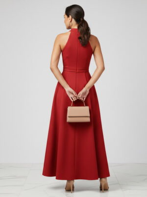 Este elegante vestido está diseñado para realzar tu silueta de forma espectacular. La tela es SCUBA CREPE (ligeramente gruesa, elasticidad del 40%, con una superficie ligeramente rugosa tipo crepé. No es brillante, lo que le da un aspecto más sofisticado y mate.) ✨ Su estructura suave , firme y con cuerpo ejerce un suave efecto moldeador que estiliza la figura, mientras que el corte de la falda fluida aporta movimiento y equilibrio visual a las caderas. El diseño presenta un sofisticado cuello halter que alarga el torso y estiliza los hombros, complementado con una cintura marcada que define la zona media para lograr un efecto reloj de arena ⏳. Es una prenda con caída impecable, tacto texturizado de alta calidad y una elasticidad que garantiza comodidad total sin perder la forma. Incluye una discreta cremallera en la parte posterior o lateral para un ajuste perfecto y fluido. ¡Ideal para lucir impecable y segura en cualquier evento! 💃🌟