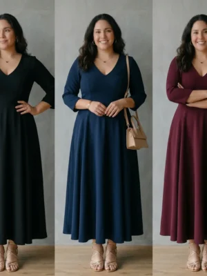La tela es SCUBA CREPE (ligeramente gruesa, elasticidad del 40%, con una superficie ligeramente rugosa tipo crepé. No es brillante, lo que le da un aspecto más sofisticado y mate). Este espectacular maxi vestido con escote en V favorecedor estiliza la silueta y realza el busto de forma natural y define la cintura con una elegancia inigualable 💃. La falda amplia y fluida de corte A disimula caderas y alarga visualmente la silueta, creando un efecto de «reloj de arena» perfecto ✨. Sus mangas 3/4 proporcionan la cobertura ideal para cualquier estación del año, mientras que la estructura y elasticidad del tejido actúan como un moldeador suave y cómodo, asegurando un ajuste favorecedor y soporte impecable 💖. Con una cremallera invisible en la espalda o lateral para un cierre limpio y sin costuras, es la prenda versátil y sofisticada que te hará brillar con confianza en cualquier evento 👗. ¡La elegancia y la comodidad nunca se habían visto tan bien juntas! ⭐