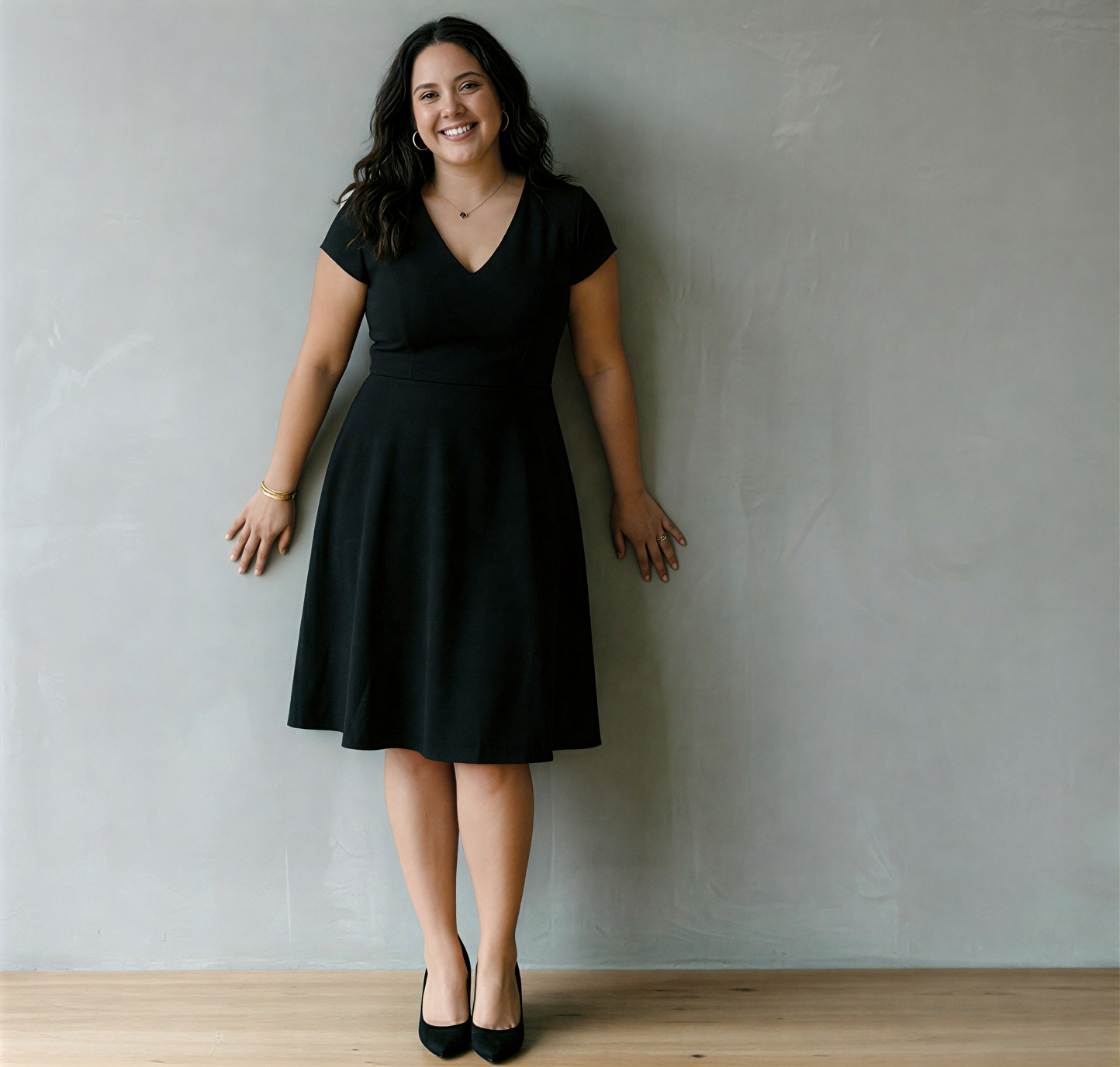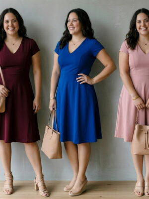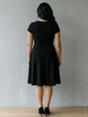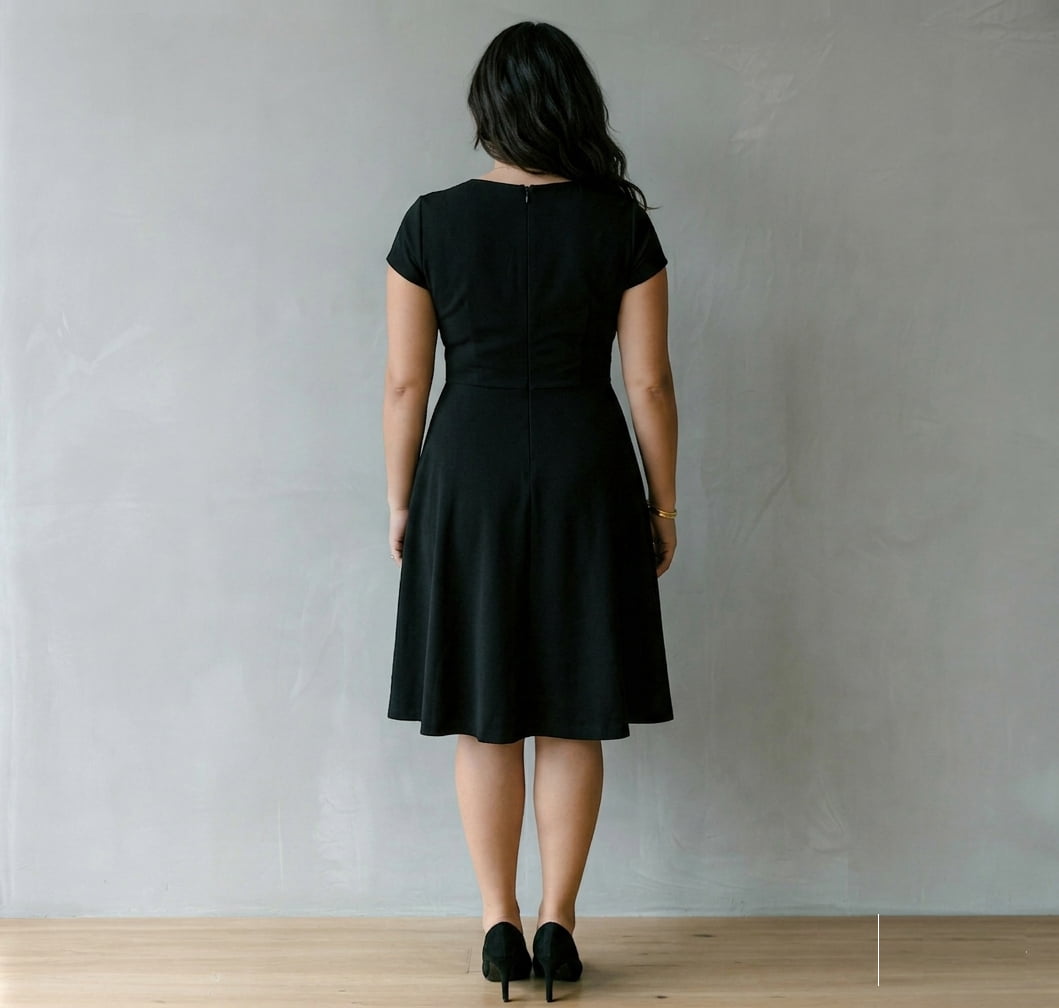 La tela es SCUBA CREPE (ligeramente gruesa, elasticidad del 40%, con una superficie ligeramente rugosa tipo crepé. No es brillante, lo que le da un aspecto más sofisticado y mate). Este vestido destaca por su diseño con escote en V que alarga visualmente el cuello y un corte de talle alto con pinzas en el busto y cintura, creando un efecto de «reloj de arena» muy favorecedor ✨. Su falda acampanada con vuelo medio aporta movimiento y disimula delicadamente las caderas, mientras que las mangas cortas cubren los hombros con elegancia 👗. La estructura del tejido, junto con su elasticidad, proporciona un ajuste cómodo, seguro y con excelente soporte, moldeando la figura sin apretar. El acabado mate y la textura sutil garantizan una sofisticación instantánea, y la cremallera invisible en la espalda o lateral asegura un cierre perfecto sin alterar el diseño limpio 💖. ¡Es la prenda versátil e impecable que necesitas para cualquier ocasión especial! ⭐