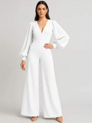 Impacto y elegancia en una sola prenda ❤️ Este jumpsuit con escote en V profundo, mangas globo y corte palazzo estiliza la figura y aporta un aire sofisticado y moderno. Confeccionado en seda matte, una tela fresca, informal, suave al tacto y con movimiento natural, ideal para lucir cómoda y con estilo en todo momento. En color blanco esta elaborado en scuba crepe una textura ligeramente mas gruesa y mas formal, Su acabado sin brillo y 20% de elasticidad garantizan un ajuste perfecto ✨ Cuenta con cremallera oculta para un calce impecable y práctico.🌟